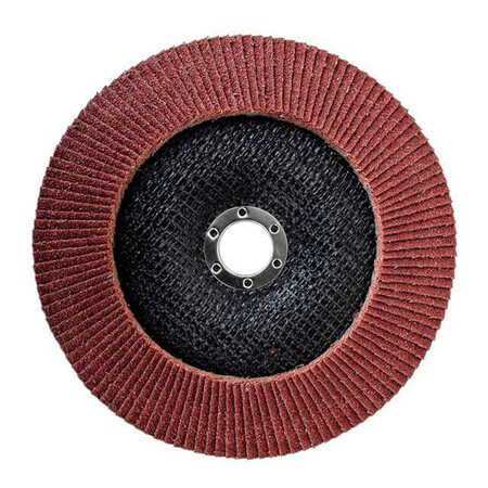 Диск шліфувальний пелюстковий торцевий INTERTOOL підходить для використання з КШМ. Застосовується в роботах з шліфування і полірування виробів з металу, сталі, бетону, сухої деревини, лаку/фарби. В залежності від поверхні, що обробляється, і запланованої товщини шару зняття підбирається абразивність зерна диска. Диски з зернистістю від 60 до 80 застосовуються для чистового шліфування поверхні. Забезпечує низький рівень шуму. Абразивне зерно: оксид алюмінію.