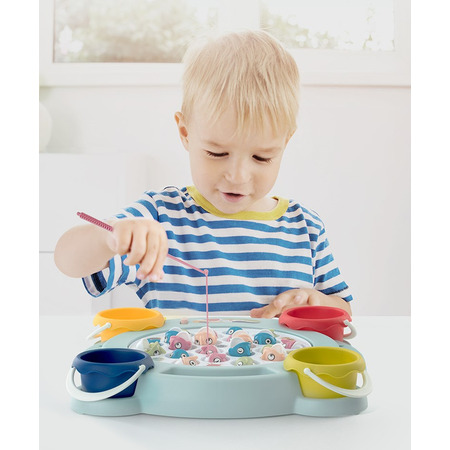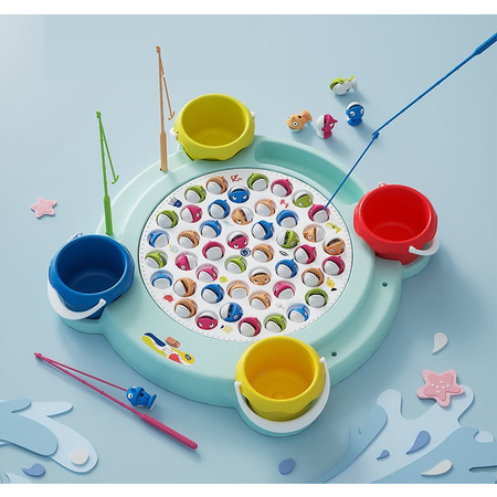 Детская рыбалка развевает у ребенка координацию движений и мелкую моторику. Имеет 45 рыбок, вращающееся игровое поле, 4 удочки и 4 ведерка для улова.
