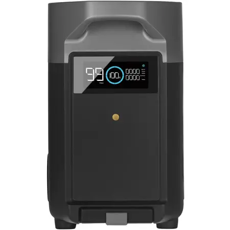 Ця додаткова батарея підключається до DELTA Pro, що дає змогу подвоїти загальну ємність до 7200 Вт•год. Підключіть дві такі до DELTA Pro, щоб отримати приголомшливі 10,8 кВт•год для використання поза мережею. Заряджання від сонячних батарей, розеток змінного струму, зарядних станцій для електромобілів або інтелектуального генератора дуже проста. Підключіть додатковий акумулятор до DELTA Pro, і вони будуть одночасно заряджатися та розряджатися. Додатковий акумулятор можна інтегрувати до домашньої електропроводки при підключенні до DELTA Pro. Ці акумуляторні блоки стають частиною рішень для згладжування пікових навантажень та аварійного живлення у вашому будинку. Ця додаткова батарея може заряджатися безпосередньо від інтелектуального генератора EcoFlow на відкритому повітрі, що надає вам ще один варіант для надзвичайних ситуацій. Отримайте ту саму інформацію про відсотки заряду батареї, час перезарядки, що залишився, годинник, що залишився, і т. д. на вбудованому екрані. Ви можете перевірити стан батареї будь-де з програми EcoFlow.