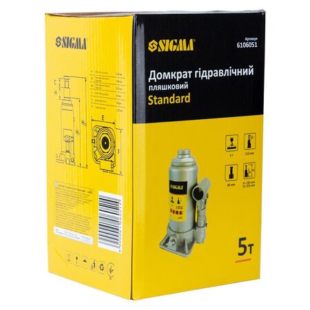 <p style="text-align: justify;"> <b>Домкрат гідравлічний пляшковий 5т H 185-355мм Standard SIGMA (6106051) </b>відрізняється простотою конструкції і зручністю в експлуатації, що розширює область його застосування і дозволяє ефективно виконувати роботи будь-якої складності.<br> <br> Його активно використовують для монтажу і демонтажу в будь-якій галузі - машинобудуванні, будівництві і т. Д. Він придатний для ремонту автомобілів, колісних пар залізничних вагонів, а також в якості силового вузла пресів, трубогибов, труборізів і іншого подібного інструментах. При роботі з домкратом рекомендується використовувати страхувальні підставки для надійної фіксації вантажу, а так-же стоянкові башмаки. </p>