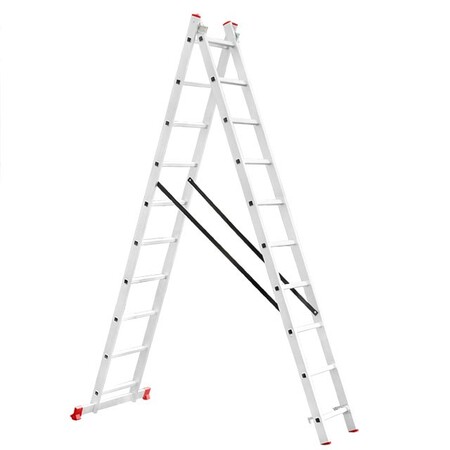 Складана двосекційна драбина стане у пригоді в будь-якій ситуації як професійним майстрам для роботи на висоті, так і для побутових потреб, а також працівникам складів, магазинів тощо. Драбина універсальна і підходить під будь-які завдання, максимальна висота становить 4.8 метри, при цьому сходи можуть трансформуватися в будь-яке з трьох положень. Вони зручні для використання в домашньому господарстві, наприклад, замінити лампочки, пофарбувати стіни, помити вікна, також їх можна використовувати як сходи на дах та ін.