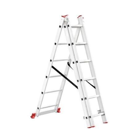 Складана трисекційна драбина стане у пригоді в будь-якій ситуації, як професійним майстрам для роботи на висоті, так і для побутових потреб, а також працівникам складів, магазинів тощо. Драбина універсальна і підходить під будь-які завдання, максимальна висота становить 3,4 метри, при цьому сходи можуть трансформуватися в будь-яке з чотирьох положень. Вона зручна для використання в домашньому господарстві, наприклад, замінити лампочки, пофарбувати стіни, помити вікна, також її можна використовувати як сходи на дах та ін.