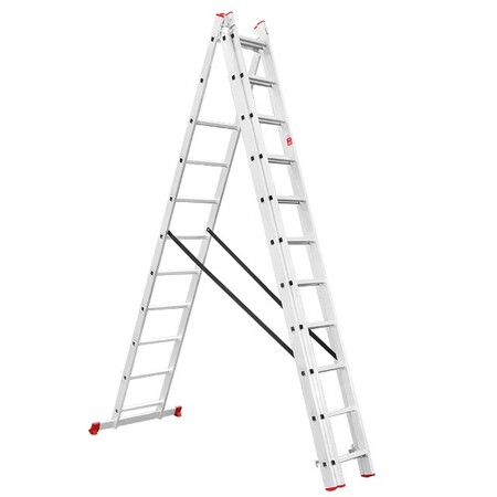 Складана трисекційна драбина стане у пригоді в будь-якій ситуації як професійним майстрам для роботи на висоті, так і для побутових потреб, а також працівникам складів, магазинів тощо. Драбина універсальна і підходить під будь-які завдання, максимальна висота становить 7.33 метрів, при цьому сходи можуть трансформуватися в будь-яке з чотирьох положень. Вона зручна для використання в домашньому господарстві, наприклад, замінити лампочки, пофарбувати стіни, помити вікна, також її можна використовувати як сходи на дах та ін.