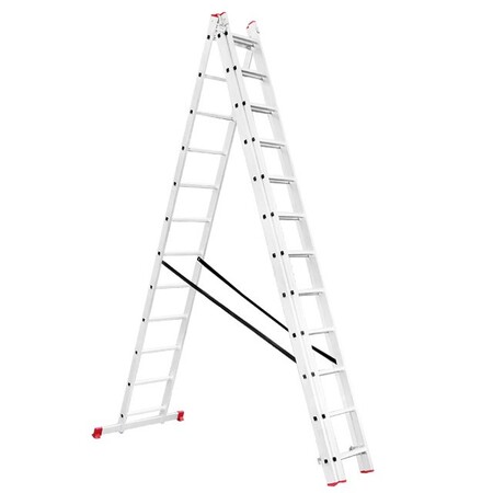 Складана трисекційна драбина стане у пригоді в будь-якій ситуації як професійним майстрам для роботи на висоті, так і для побутових потреб, а також працівникам складів, магазинів тощо. Драбина універсальна і підходить під будь-які завдання, максимальна висота становить 7,89 метрів, при цьому сходи можуть трансформуватися в будь-яке з чотирьох положень. Вона зручна для використання в домашньому господарстві, наприклад, замінити лампочки, пофарбувати стіни, помити вікна, також її можна використовувати як сходи на дах та ін.