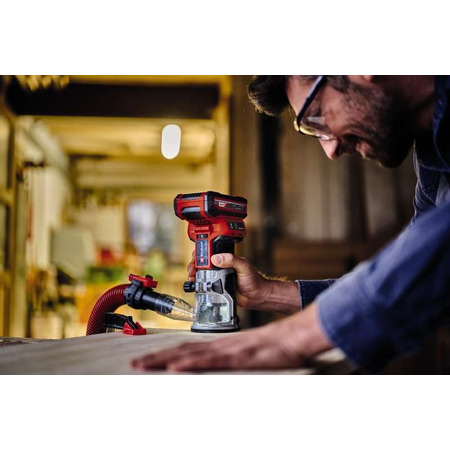 Аккумуляторный бесщеточный Фрезер окантовочный Einhell TP-ET 18 Li BL - Solo серии Professional является устройством семейства Einhell Power X-Change и является высококачественным, мощным инструментом для специалистов для решения сложных задач формирования боковой грани при обработке листового материала, оформления скруглений и фасок, вырезания пазов для мебельной фурнитуры, корректировка шпона. Фрезер имеет бесщеточный двигатель для лучшей производительности и продления времени по сравнению с обычными двигателями с угольными щетками.