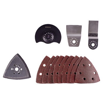 - В комплект поставки входят: треугольная шлифовальная подошва, 9 шлифлистов (3*P60/3*P80/3*P120), шабер, погружное пильное полотно по дереву и пластику (HCS), полотно по дереву, металлу и пластику (HSS).