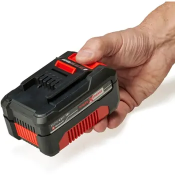 Starter-Kit линейки Power X-Change system серии Expert plus состоит из зарядного устройства и аккумуляторной батареи Power X-Change Li-Ion 18V 4,0Ач. Вы можете использовать Power X-Change аккумулятор для питания более 20 различных инструментов линейки Power X-Change system. Это означает, что Вам нужна только одна батарея для всего семейства продуктов Einhell Power X-Change. Прорезиненный прочный корпус аккумуляторной батареи защищает её от ударов, и делает пригодными для работы в тяжелых условиях.