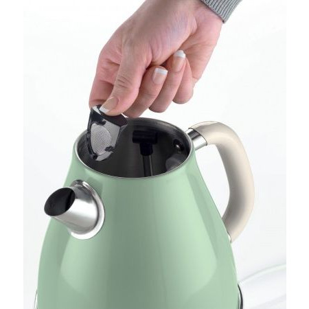 Ця модель Ariete оснащена резервуаром, який здатний вмістити в себе до 1.7 літра води. Потужність дискового нагрівального елементу складає 2000 Вт, що гарантує швидке закипання. Є спеціальне прозоре вікно, з нанесеною на нього мірною шкалою, яка дозволяє вам відстежувати рівень рідини, що залишилася в резервуарі. Даний прилад оснащений фільтром від накипу, який дозволить вам повною мірою насолодитися смаком чаю або кави.