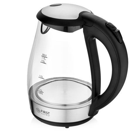 Электрочайник First FA-5405-8 представлен в формате классической конструкции, при которой немаловажное значение имеет внешний вид техники. Она сделана из устойчивого к воздействию температуры стекла и прочного пластика, имеет нейтральное оформление без ярковыраженных элементов и эргономичную систему управления с простыми регуляторами механического типа. Прозрачное стекло в сочетании с черным цветом дает лучший вариант для внедрения в любой дизайн.