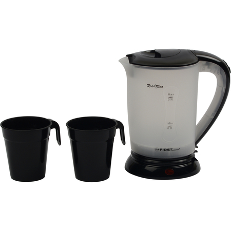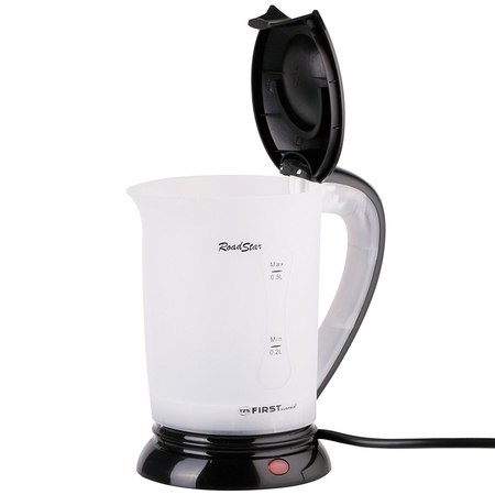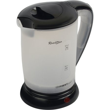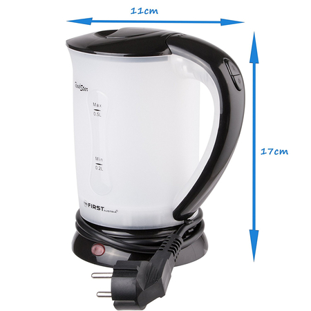 Полезный объем электрочайника First FA-5425-2-BA: 0,5л. Его вполне достаточно для удовлетворения нужд одного, двух человек в условиях поездки. Потребляемая мощность дорожного электрочайника, позволяет вскипятить воду до пяти минут. По типу нагревательного элемента, модель относится к дисковому (скрытому) типу. Преимуществом дискового типа над спиральным, является высокая площадь контакта с водой и скорость ее нагревания. Трубчатый электронагреватель (ТЭН) расположен в днище корпуса.