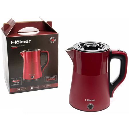 Электрический чайник Hölmer HKS-218R - это стильный и современный чайник с двойными стенками, который идеально подходит для приготовления горячей воды для чая, кофе или других напитков. Чайник имеет мощность 1500 Вт и вместимость 1,8 л, оснащен автоматическим отключением при закипании, блокировкой включения без воды и технологией двойных стенок, которая сохраняет воду теплой в течение длительного времени.