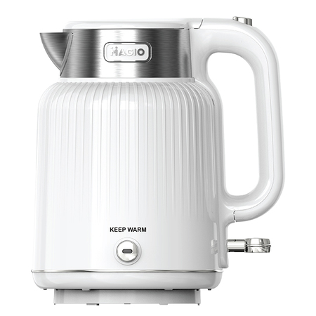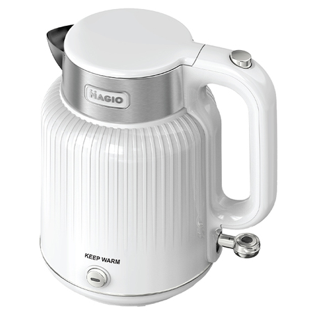 Электрочайник Magio MG-508 – это отличный электрический чайник с корпусом из высококачественного пластика белого цвета. С мощностью 1250 Вт он быстро вскипятит воду, при том что вмещает данная модель целых 1,7 литров, чего вполне достаточно для семьи. Индикатор уровня воды позволяет контролировать количество воды в чайнике. Для удобства он поворачивается на подставке на 360 градусов. Техническими преимуществами электрочайника Magio являются наличие фильтра от накипи, визуальный индикатор уровня жидкости в приборе и опция автоматического отключения после закипания. Чайник легко очищается с помощью влажной губки или салфетки.