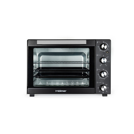 Holmer HEO-162C – это очень вместительная модель электрической печи, с большим объемом камеры 60 литров и мощностью 1900 Вт. Позволяет готовить на трех уровнях. Оснащена механическим управлением и таймером (с автоотключением), а также разнообразными режимами приготовления на выбор: гриль, запекание, выпечка.