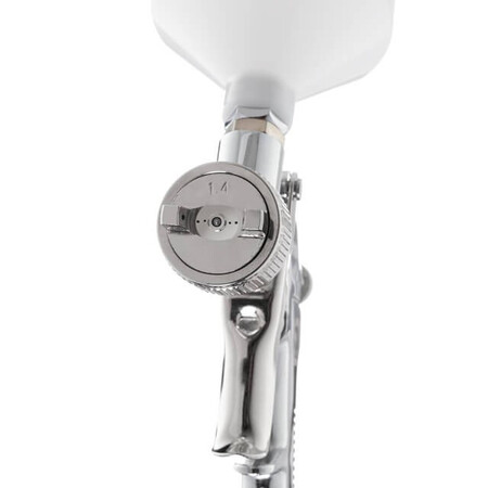 Фарбопульт PT-0112 — відмінний помічник в роботі з ЛФМ середньої в’язкості. Даний пневматичний фарбопульт виготовлений за технологією НР (High Pressure). Його робочий тиск — до 5 атм. Завдяки високій швидкості повітряного потоку забезпечується вражаюча швидкість покриття поверхні. Він відмінно впорається з побутовими фарбувальними завданнями і відмінно зарекомендував себе в роботі з ґрунтовкою, лаками і морилкою. Нескладна конструкція обумовлює простоту і ефективність в експлуатації. Об'єм пластикового бачка з верхнім розташуванням — 600 мл. Діаметр форсунки — 1,4 мм. Факел розпилення може бути пласким чи овальним. Витрата повітря коливається в межах 130-190 л/хв.