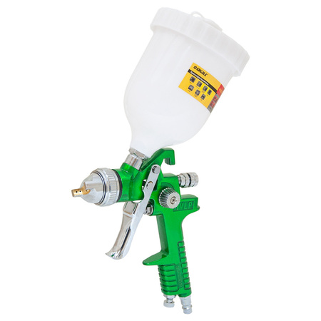 Професійний Фарборозпилювач Ø1.3+1.7 з в/б (зелений) SIGMA (6812121) системи HVLP (великий обсяг, низький тиск) з верхньою подачею фарби. Дуже добре підходить для застосування в автомалярних майстерень, СТО, в меблевому виробництві, в будівництві і в інших галузях.