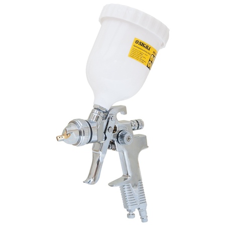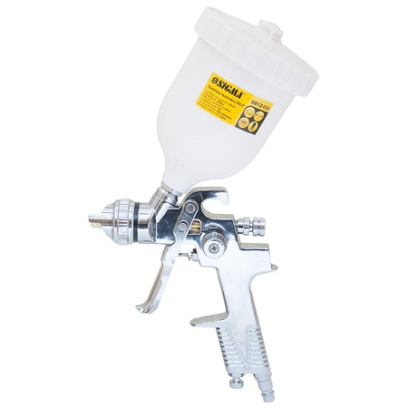 Професійний Фарборозпилювач Ø1.3+1.8 (хром) з в/б (пласт) SIGMA (6812151) системи HVLP (великий обсяг, низький тиск) з верхньою подачею фарби. Дуже добре підходить для застосування в автомалярних майстерень, СТО, в меблевому виробництві, в будівництві і в інших галузях.