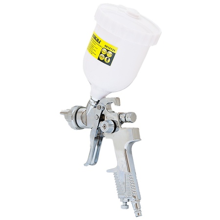 Професійний Фарборозпилювач Ø1.3мм (хром) з в/б (пласт) SIGMA (6812131) системи HVLP (великий обсяг, низький тиск) з верхньою подачею фарби. Дуже добре підходить для застосування в автомалярних майстерень, СТО, в меблевому виробництві, в будівництві і в інших галузях.