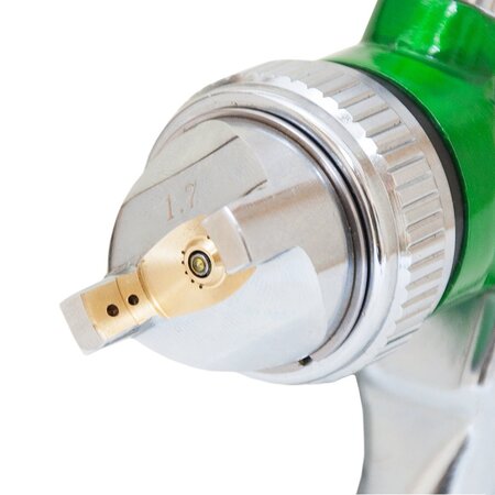 Професійний Фарборозпилювач Ø1.7 з в/б (зелений) SIGMA (6812111) системи HVLP (великий обсяг, низький тиск) з верхньою подачею фарби. Дуже добре підходить для застосування в автомалярних майстерень, СТО, в меблевому виробництві, в будівництві і в інших галузях.