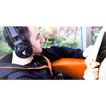 AORUS H5, покрытый мягкими подушками на ушных чашках и оголовье, обеспечивает дополнительные комфортные игровые сеансы, блокируя внешние факторы шума.