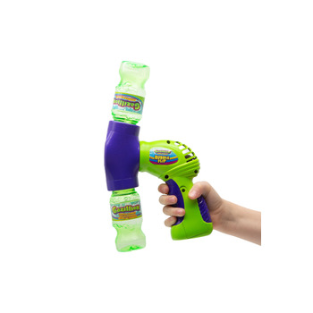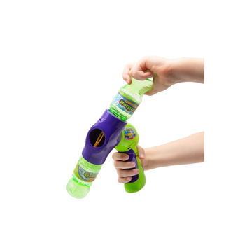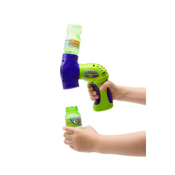 Для видування бульбашок із генератором Gazillion «Напівавтоматичний бластер» потрібно: приєднати пляшечку з розчином зверху, а порожню — знизу. Потім натиснути на кнопку «Пуск». Після спорожнення верхньої ємності треба поміняти місцями пляшечки й можна продовжувати видування. Працює від трьох батарейок АА (потрібно придбати окремо).