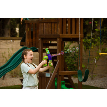 Для початку гри потрібно прикрутити до генератора пляшечку з розчином (118 мл), що є в наборі. Потім — натиснути на кнопочку на корпусі — з’являться яскраві бульбашки. Із цими бластерами можна влаштовувати веселі бої. Працюють від шести (GZ36447) або трьох (GZ36444) батарейок АА (потрібно придбати окремо).