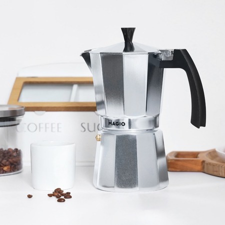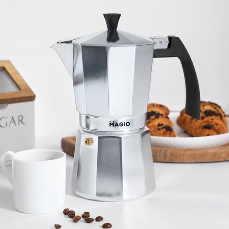 Классическая гейзерная кофеварка Magio отлично подходит для приготовления традиционного эспрессо.