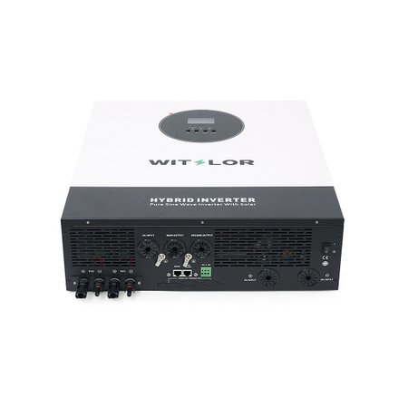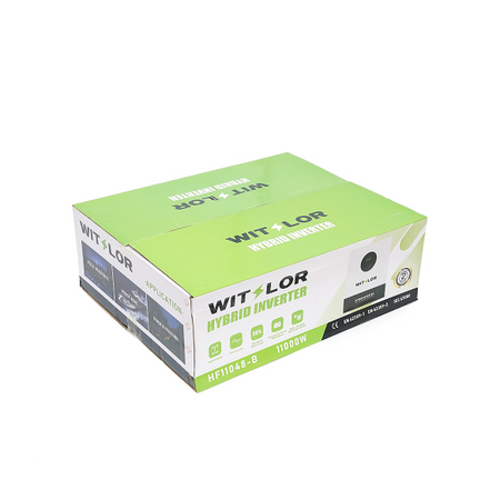 Характеристики: Вхідні параметри Джерело живлення L+N+PE Номінальна вхідна напруга 220 / 230 / 240 VAC Діапазон напруги 90-280 VAC ± 3 V (APL Mode), 170-280 VAC ± 3 V (UPS Mode) Частота 50 / 60 Hz (Автоматичне визначення) Вихідні параметри Номінальна потужність 11000 W Інвертор від батареї 11000 W Інвертор від сонячної енергії Вихідна напруга 220 / 230 / 240 VAC ± 5% Вихідна частота 50 / 60 Hz ±0.1% Форма сигналу Чиста синусоїда (Pure Sine Wave) Час перемикання Комп`ютери (UPS Mode): 10 мс. Побутова техніка (APL Mode): 20 мс Пікова потужність 22000 VA Перевантажувальна здатність 1 с: 105%-150% навантаження, 2 с: 150%-200% навантаження, 400 мс: >200% навантаження Параметри для роботи з мережею (Grid-Connected Operation) Вихідна напруга 220 / 230 / 240 VAC ± 5% Діапазон напруги 195-253 VAC Діапазон частоти для мережі 49-51±1 Hz / 59-61±1 Hz Номінальний вихідний струм 47,8 A Коефіцієнт потужності >0.99 Максимальний ККД (DC / AC) 98% Напруга батареї 48 VDC Напруга постійної зарядки (регульована) 56.4 VDC Напруга підтримуючої зарядки (регульована) 54 VDC Зарядний пристрій (Chargers) Режим заряджання від PV MPPT Dual MPPT Максимальна потужність входу PV 2x5500 W Діапазон MPPT 90-500 VDC Найкраща напруга 300-400 V Максимальна напруга підзарядки від вхідного PV 500 VDC