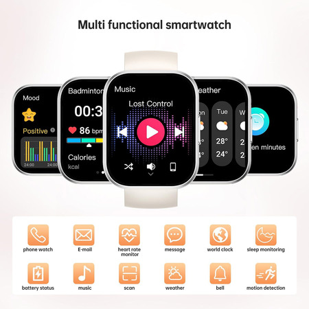 Акселерометр, Відстеження сну, Датчик пульсу, 100+ спортивних режимів, AI голосовий помічник, Вібромотор, Мікрофон, Динамік, Захист IP67, Магнітна зарядка, 100+ циферблатів