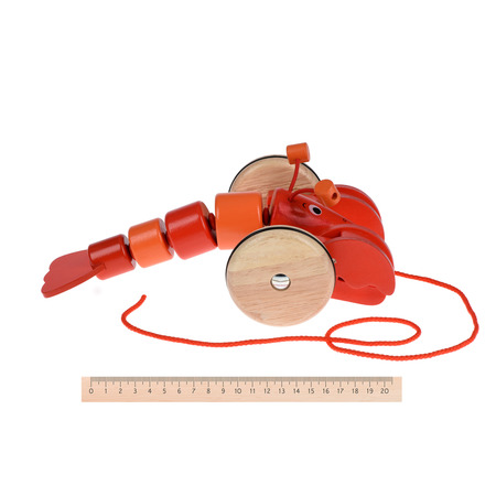 Деревянная каталка в виде лобстера привлечет внимание ребенка, надолго увлечет и подарит часы интересных и развивающих игр. Игрушка оснащена веревкой, за которую ребенку необходимо приводить лобстера к движению. Во время движения яркий лобстер щелкает клешнями. Игрушка бренда goki изготовлена из высококачественных, сертифицированных материалов, не способны причинить вред здоровью и покрыта безопасными красками на водной основе. Игрушка подходит для детей от 1 года. Размер 27 x 18.5 x 9 см, длина веревки 70 см.