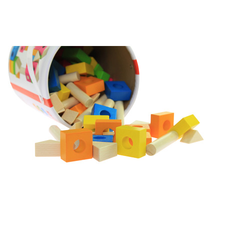Конструктор «Строительные блоки» состоит из 88 кирпичиков универсальных форм и размеров. Конструктор сделан из натурального дерева, поэтому является безопасным для детей. Конструктор имеет блоки со сквозными отверстиями для фиксации между собой и треугольные и цилиндрические элементы, поэтому из него можно выстроить разнообразные фигуры. Такой конструктор будет интересен как младшим, так и старшим детям. Благодаря функциональности конструктор «Строительные блоки» будет развивать креативное мышление и пространственное воображение.