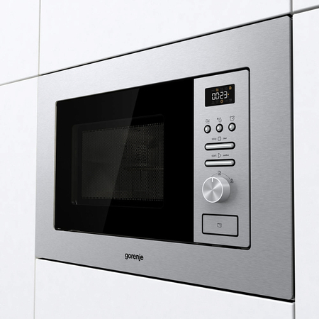 Микроволновая печь с грилем Gorenje BMI201AG1X выполнена в стильном корпусе с элементами черного цвета и «Нержавеющая сталь» и отлично впишется в любой современный кухонный интерьер. Она имеет следующие габаритные размеры: высота — 38,8 см, ширина — 59,5 см, глубина — 34,4 см.