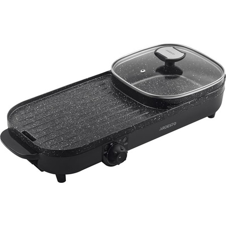 Настільний електричний гриль ARDESTO GHP-5BL – це поєднання функціональності та зручності. Завдяки трьом режимам можна готувати соковиті стейки, овочі на грилі та смачні гарніри чи супи. Ба більше, можна навіть поєднати кілька кулінарних процесів, адже конструкцією передбачено ребристу поверхню для смаження 24,5 × 20 см і відокремлену ємність для варіння об’ємом 1,8 л. Протипригарне покриття зумовлює можливість смажити без олії, а автоматичне налаштування температури залежно від вибраного режиму готування забезпечує щоразу вдалий результат.