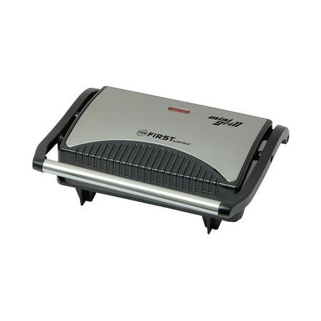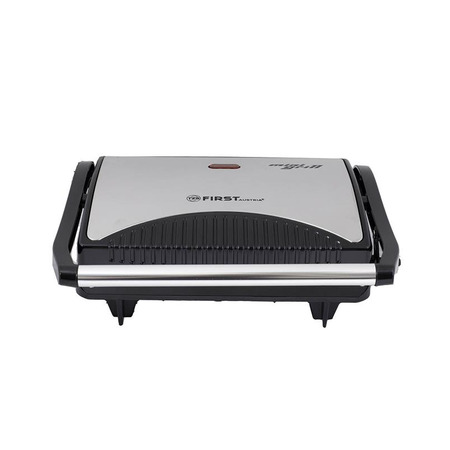 Крышка и ручка контактного гриля First FA 5343-1 сделаны из нержавеющей стали, которая хорошо сочетается с черным, жаропрочным корпусом. В целом, модели характерен стильный и современный дизайн.