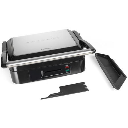 С контактным грилем Holmer HCG-20R легко готовить как мясные, так и овощные или рыбные блюда, а также разогревать пироги, пиццу или гренки. При использовании электрогриля продукты готовятся быстро, поскольку контактируют с плитами одновременно с двух сторон, сохраняя все полезные свойства. Просто подберите оптимальную температуру для идеального прокаливания и выберите одно из двух рабочих положений устройства.