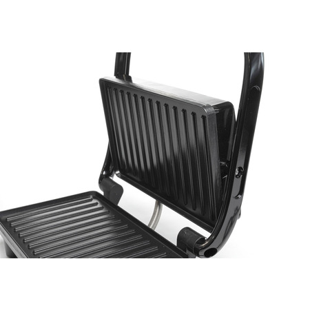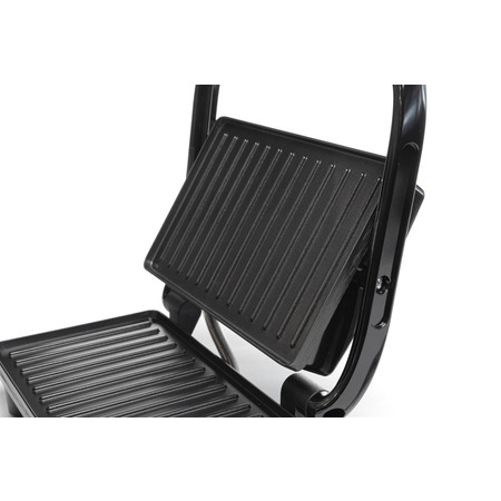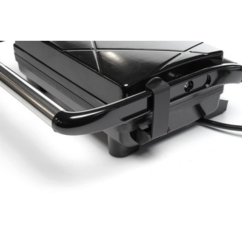Гриль имеет рабочую поверхность 23x14,5 см, чего вполне достаточно для 2-3 порций одновременно. Компактные габариты позволяют сохранять его вертикально или горизонтально – идеальный вариант для небольших кухонь или офиса.