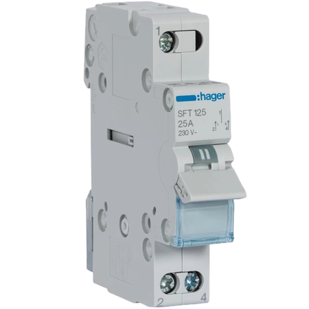 Кількість полюсів: 1 P; Номінальна робоча напруга змінного струму: 230 V; Номінальна напруга ізоляції: 440 V; Номінальний струм: 25 A