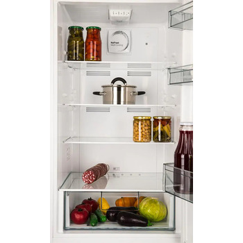 Замораживание осуществляется с помощью циркуляции охлажденного воздуха, а образующаяся при этом влага отводится из морозильной или холодильной камеры. Благодаря этому в морозильной и холодильной камерах не появляется лед, а замороженные продукты не покрываются слоем инея.