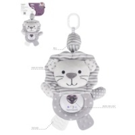 Іграшка має звукові та світлові ефекти, дзвіночки, прорізувач. Живлення: 2 батарейки типу AG13 (у комплекті). Матеріал: текстиль, пластик. Вік: 0 місяців + (від народження). Розмір іграшки 35х17х8см.