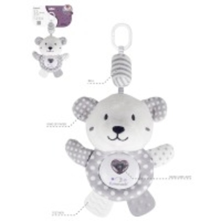 Іграшка має звукові та світлові ефекти, дзвіночки, прорізувач. Живлення: 2 батарейки типу AG13 (у комплекті). Матеріал: текстиль, пластик. Вік: 0 місяців + (від народження). Розмір іграшки 35х17х8см.