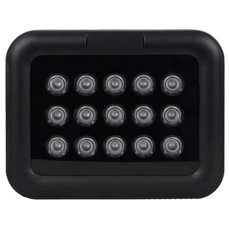 ● Дальність ІЧ-підсвічування складає 70 м;● ІЧ-прожектор з 15 світлодіодів, з довжиною хвилі 950 нм і кутом променя 90°. Завдяки довжині хвилі 950 нм підсвічування прожектора непомітно вночі;● Напруга живлення 12 В, струм споживання 0.7 А;● Металевий корпус чорного кольору з класом захисту IP66;● Можливість використання поза приміщеннями.