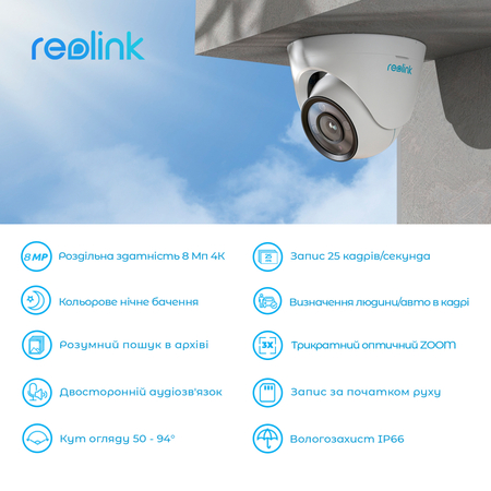 Прочный корпус делает эту умную IP-камеру Reolink водонепроницаемой. Она отлично работает как внутри, так и снаружи вашего дома, при любых суровых погодных условиях.