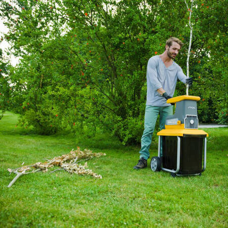 Мощность 2.5 кВт; Максимальный диаметр ветки до 40 мм; Режущий инструмент самовтягивающая фреза; Объем сборника 60 л