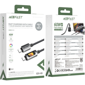Кабель USB 2.0 Type-C M-M моделі C21-03 від Acefast - надійний і зручний аксесуар, який допоможе забезпечити швидке та надійне заряджання вашого пристрою, а також зручну передачу даних між пристроями.Цей кабель стане відмінним вибором для ваших потреб у заряджанні і синхронізації пристроїв з роз'ємами Type-C.
