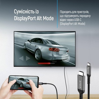 Совместимость с устройствами, поддерживающими DisplayPort Alt Mode через USB-C.