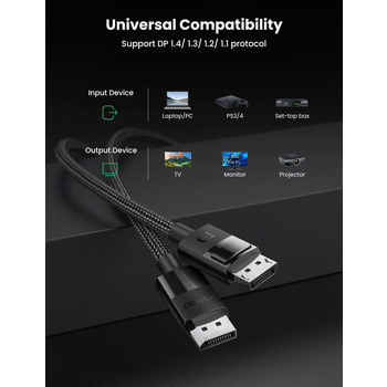 Кабель DisplayPort M - M V1.4 8K 2м Plastic Case Braided Cable DP114 чорний UGREEN