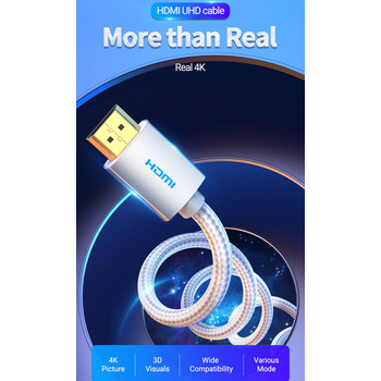 Кабель HDMI M - M від Vention - це ідеальний вибір для підключення вашого пристрою до телевізора, монітора або іншого аудіо-відео обладнання. Цей кабель має довжину 3 метри і підтримує версію 2.0 стандарту HDMI, що забезпечує високу якість зображення і звуку. <br><br>Завдяки підтримці 4K роздільної здатності при частоті 60 Гц, ви зможете насолоджуватися чітким та реалістичним відтворенням вмісту на вашому дисплеї. Крім того, цей кабель має обплетену конструкцію, що забезпечує високу стійкість до механічних пошкоджень.<br><br>Кабель HDMI M - M від Vention має сріблясте металеве обплетення, яке не тільки забезпечує додатковий захист від електромагнітних перешкод, але і надає йому стильний вигляд. З його допомогою ви зможете налаштувати зручне та надійне підключення між вашими пристроями і насолоджуватися високоякісним мультимедійним відтворенням.