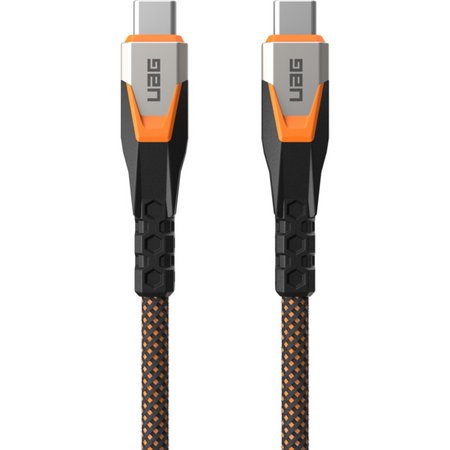 Кабель UAG Type-C - Type-C Data/Charge довжиною 0.75 метра з підтримкою швидкості зарядки 240 Вт, виготовлений з двокомпонентного найлону, що має подвійне плетіння. Це забезпечує міцність і довготривалість кабелю, що робить його ідеальним для щоденного використання, особливо умовах активного життя. Кабель підтримує зарядку та передачу даних між пристроями і може обслуговувати пристрої з потужністю до 240 Вт. Роз'єми Type-C дозволяють зручне підключення до сучасних гаджетів.