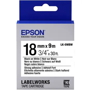 Картридж зі стрічкою Epson LabelWorks LK5WBW Strong Adhesive 18 мм 9 мм Black/White (C53S655012) є оригінальним аксесуаром для принтерів і маркіровочних пристроїв Epson LabelWorks. Цей картридж містить стрічку шириною 18 мм і довжиною 9 метрів для створення текстильних та відривних наліпок. Міцний клей забезпечує надійне адгезію до різних поверхонь, що робить його ідеальним варіантом для виробництва етикеток, які необхідно забезпечити додатковим захистом. Чорнильне написання на білому фоні надає чіткість і контрастність тексту. Цей картридж допоможе вам створювати професійні та стійкі етикетки для широкого спектру застосувань.