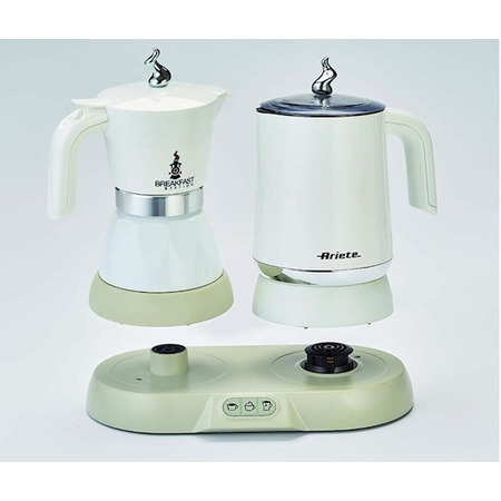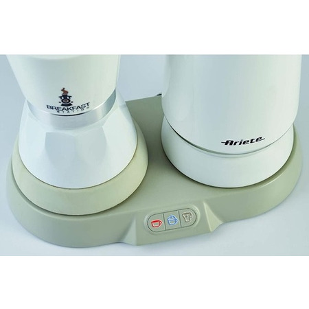 В універсальному наборі для сніданку ARIETE ергономіка продумана до найменших деталей. Блок керування виведений на фронтальну панель і представлений трьома функціональними кнопками, що відповідають за приготування кави, спінюваня молока і кип'ятіння води. А поворотна підставка дозволить розміщувати електроприлади під будь-яким кутом. У моменти простою пристрій вимикається для економії електроенергії.