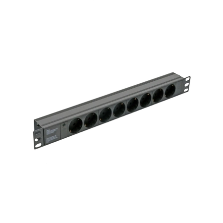Силовой блок предназначен для установки питания телекоммуникационного оборудования в 19" формат. Электрические характеристики: напряжение 220-250В, сила тока 10-16А, частота 50-60Гц. Блок имеет металлический корпус, на котором размещены гнезда под вилку стандарта CEE 7/7. гнезд 8. На лицевой панели расположен зеленый светодиодный индикатор, показывающий наличие питания.